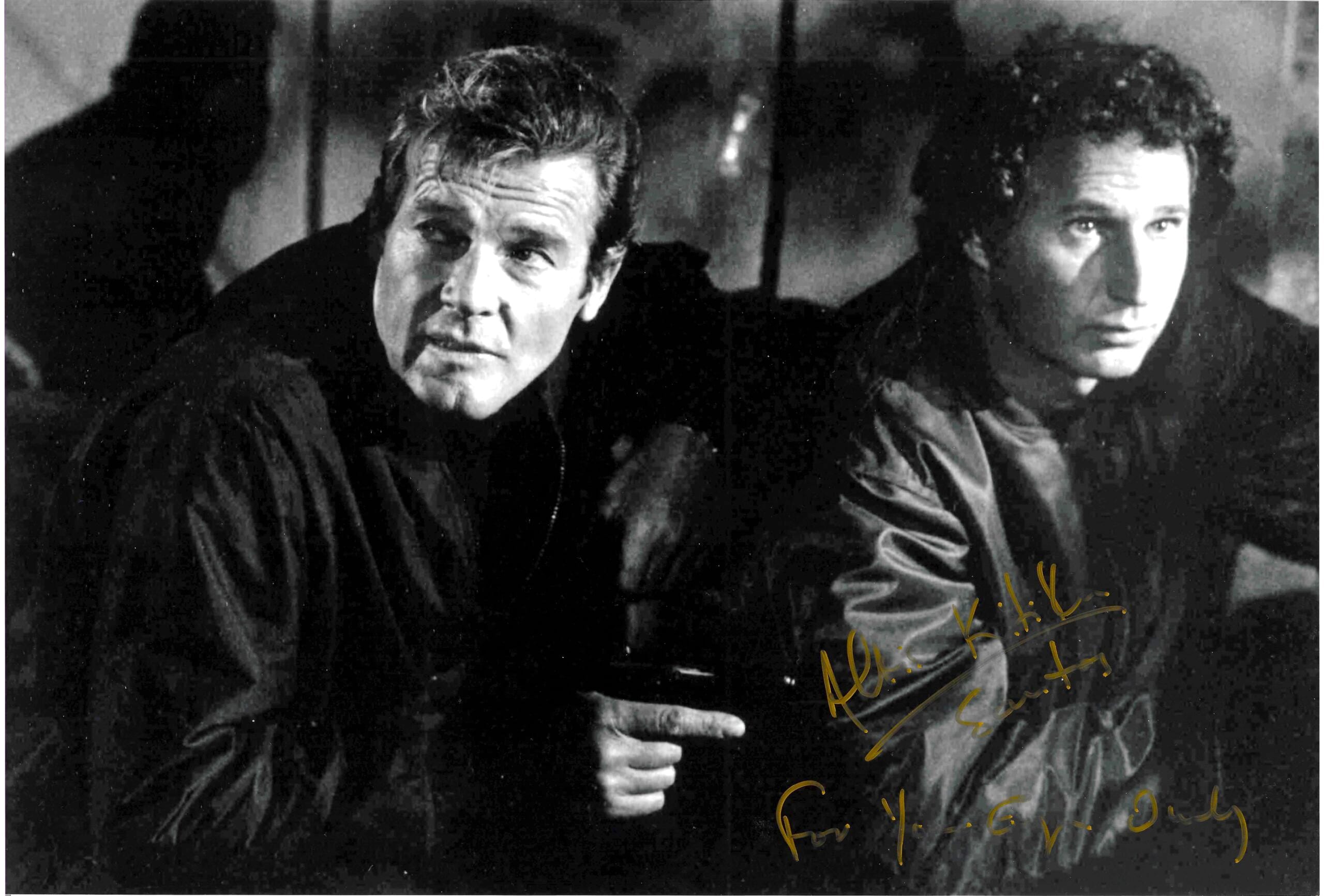 An 8×12 inch photograph with Roger Moore, signed by actor Alkis Kritikos.