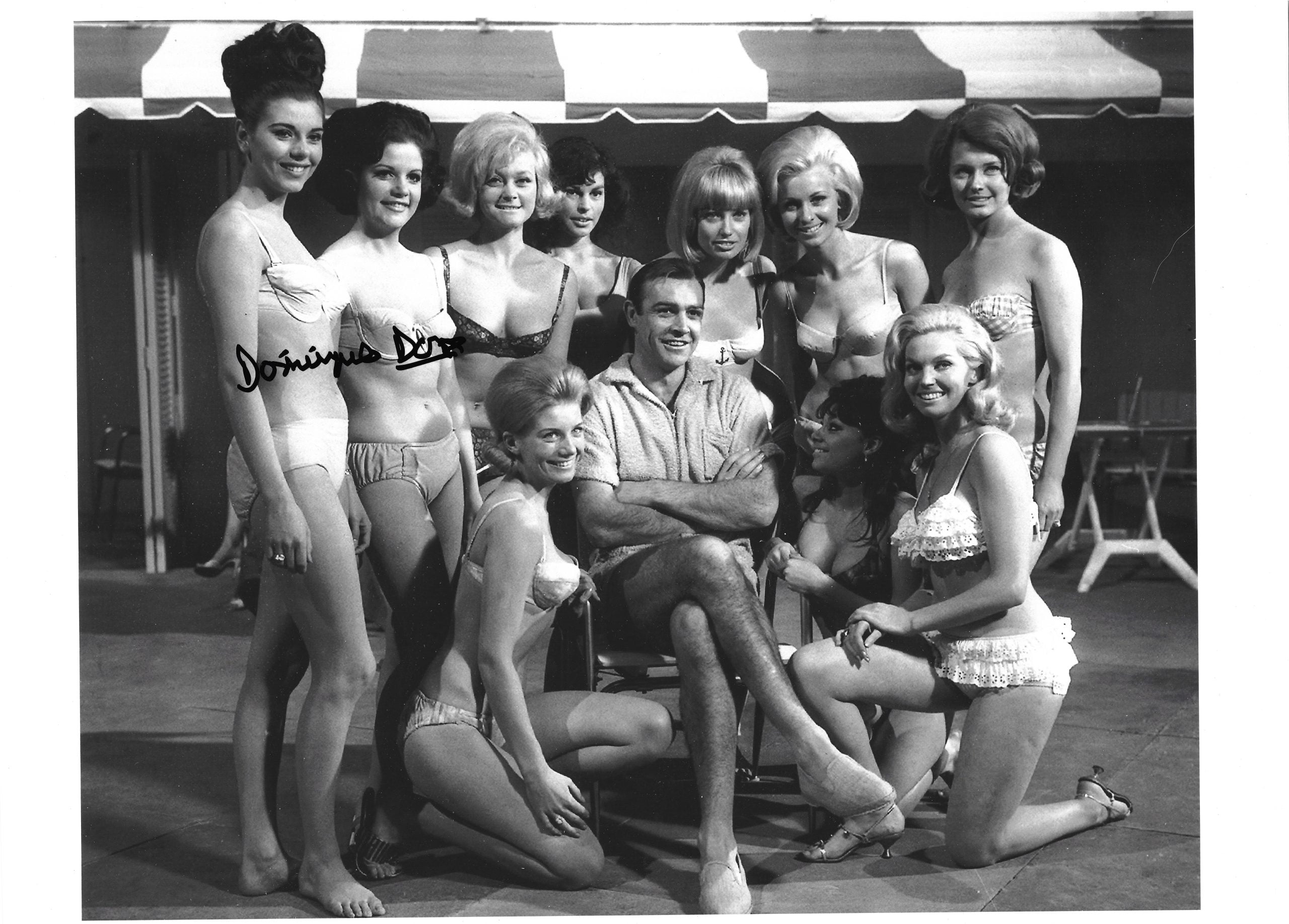 A rare black and white still from “Goldfinger”, hand signed by Dominique Don.