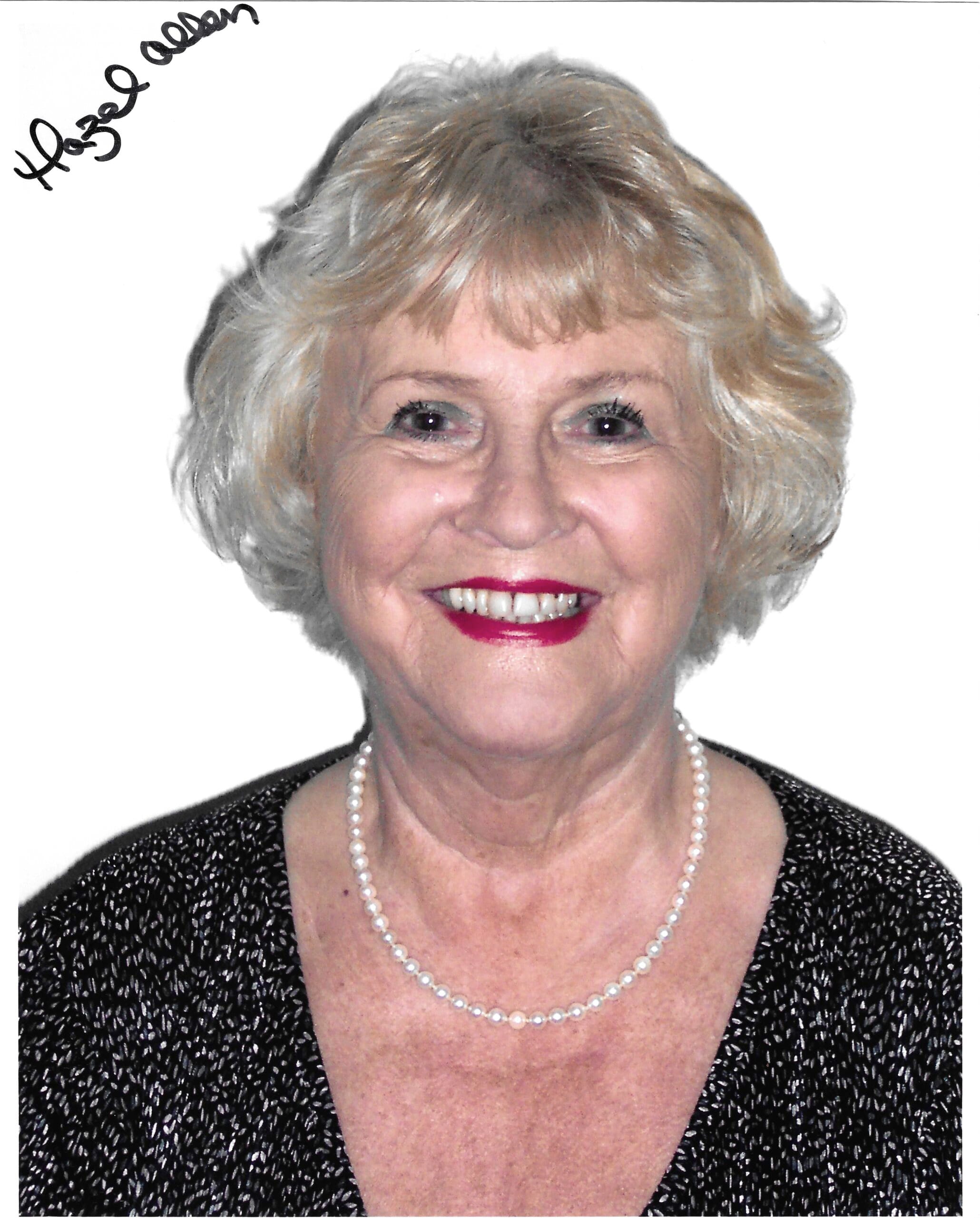An 8×10 inch photograph signed by Hazel Allen.