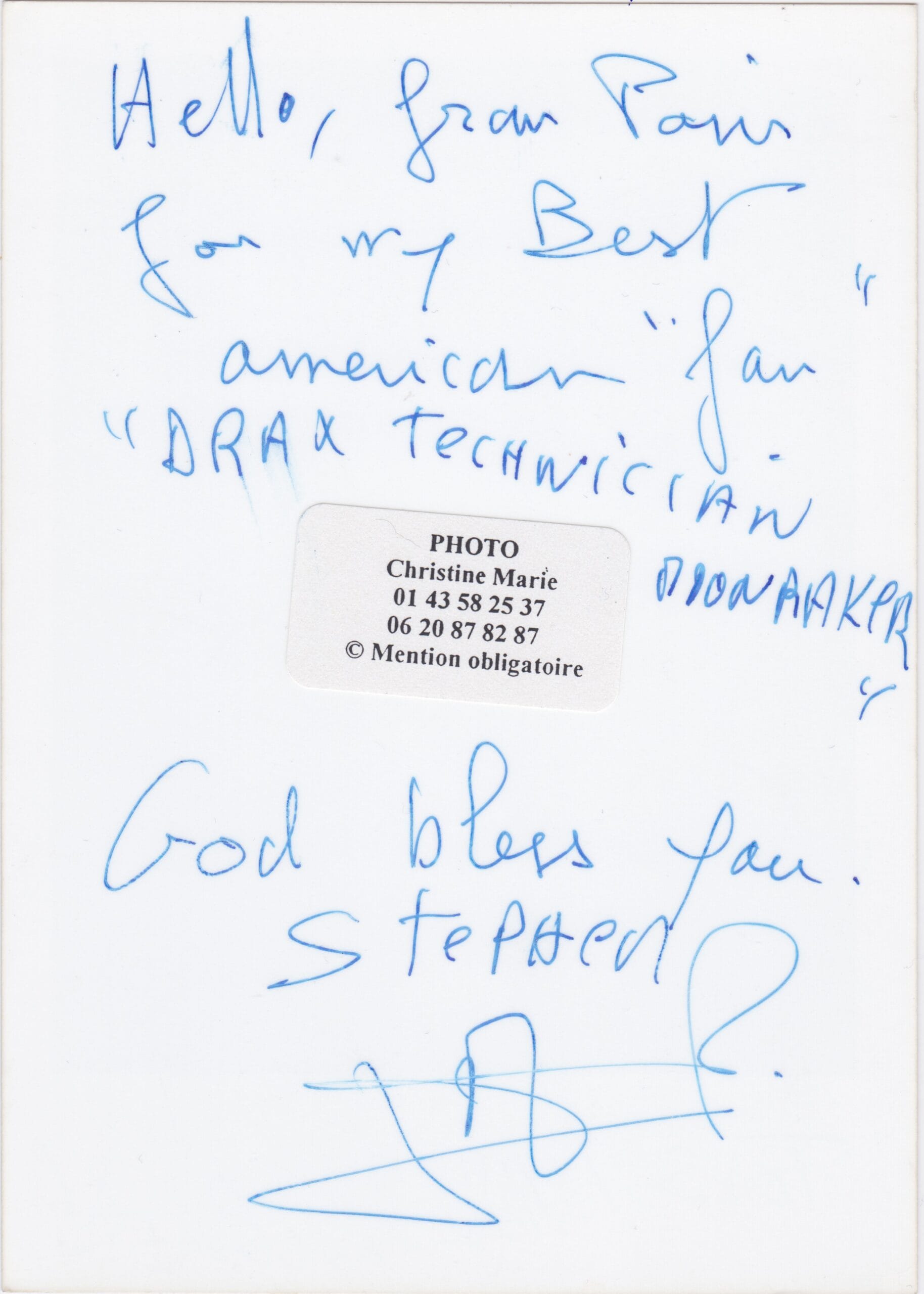 A 3×5 inch photograph hand signed by Jean-Michel Martial.