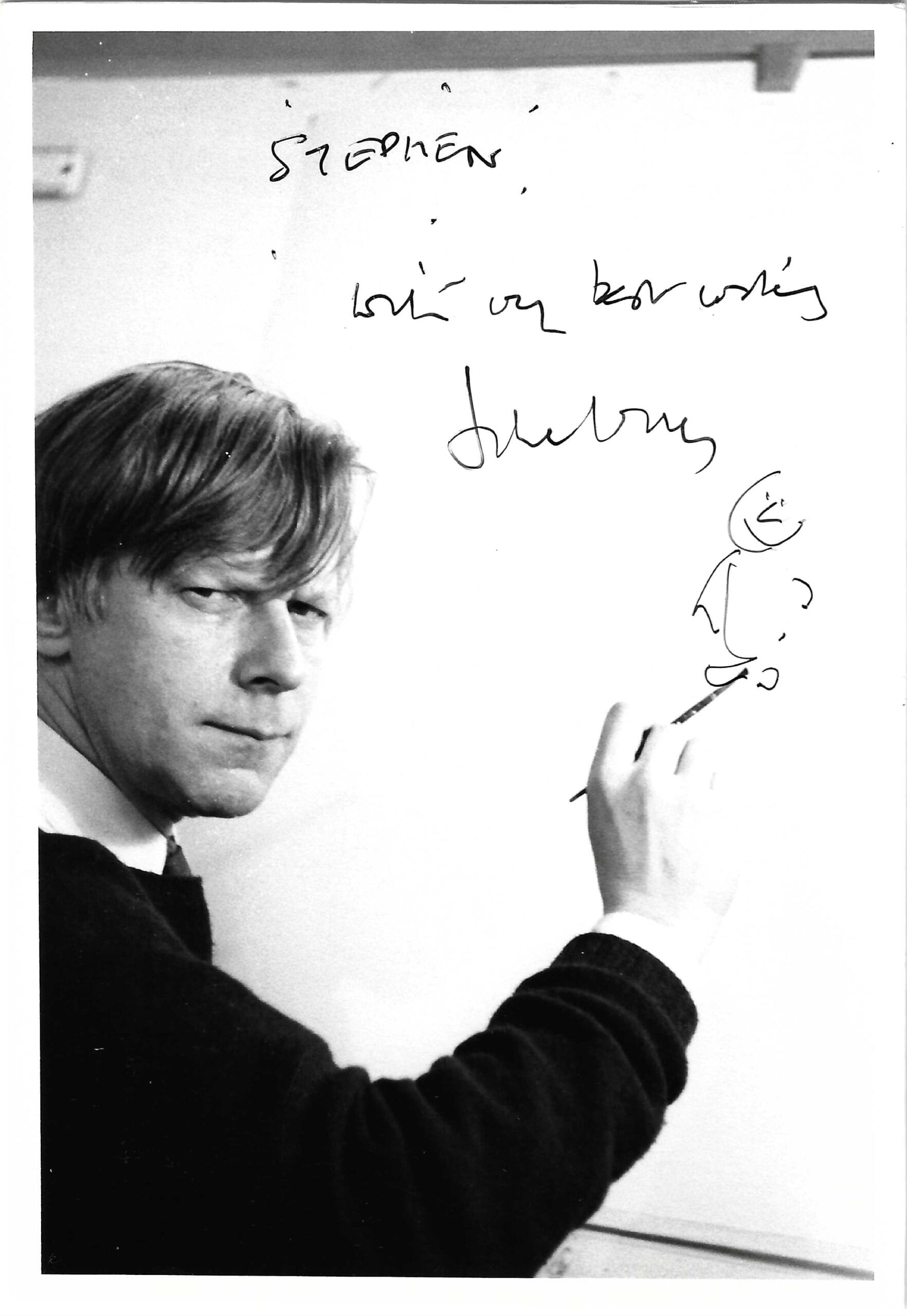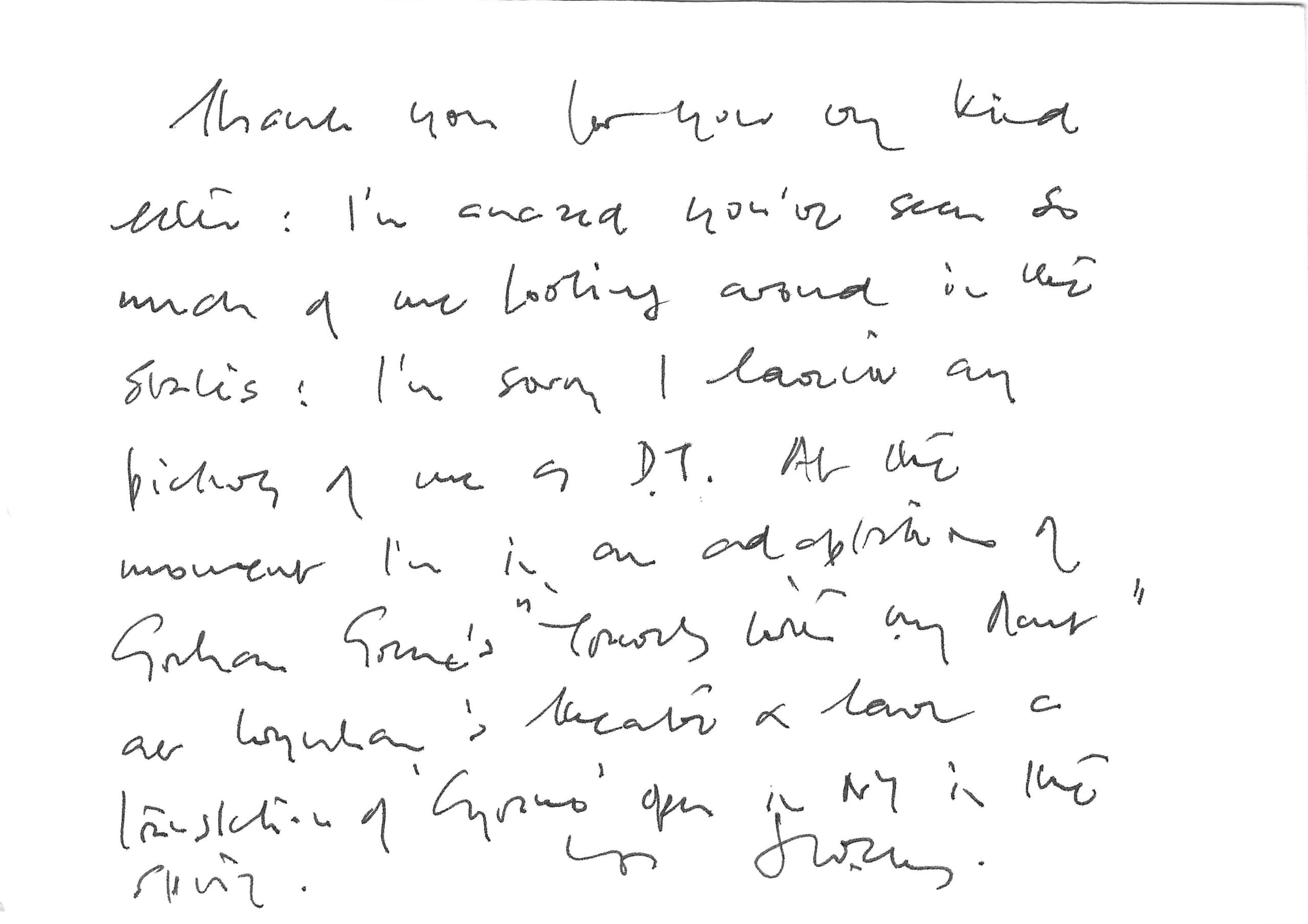 On the reverse, John makes a reference of not having any photos of him as Denis Thatcher!