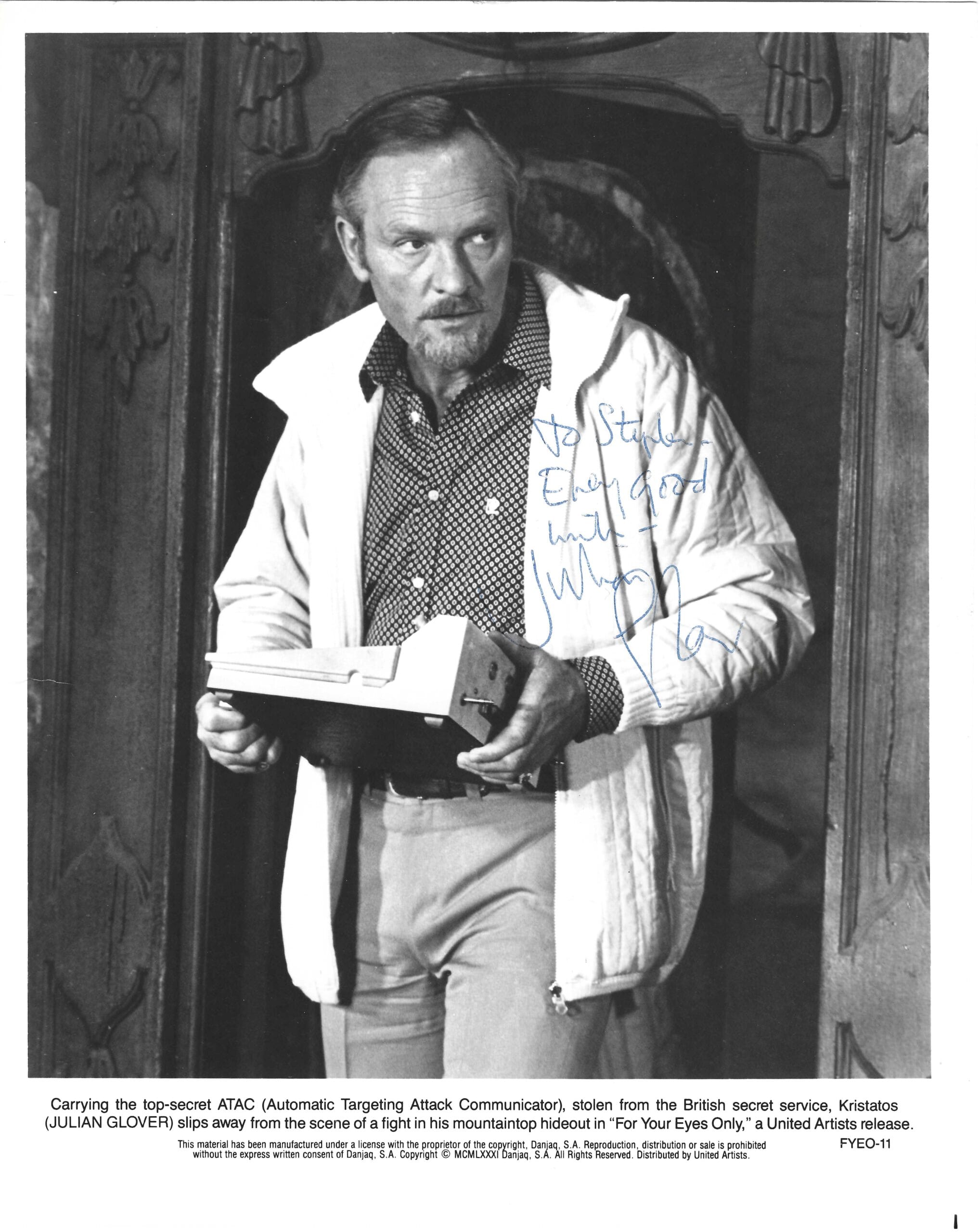 An original publicity still from “For Your Eyes Only” (size 8×10 inches), hand signed by Julian Glover.