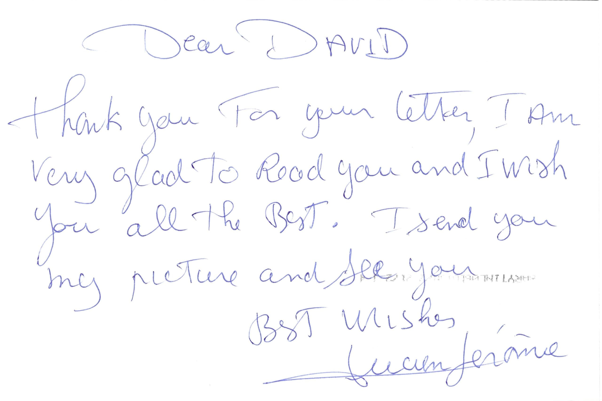 It was signed for the collection of David Hodgson.