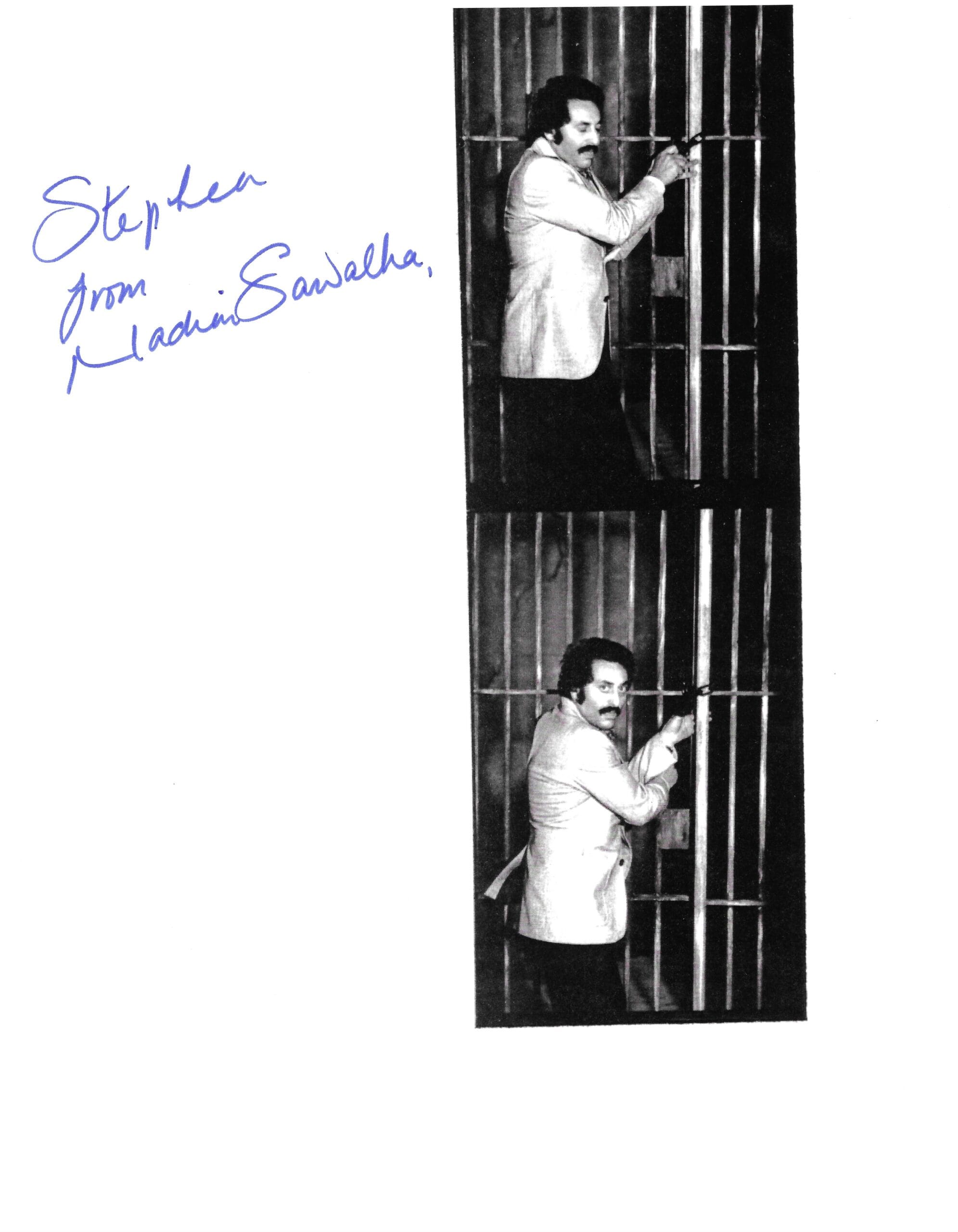 An A4 paper photocopy of two rare contact sheet stills, hand signed by actor Nadim Sawalha.