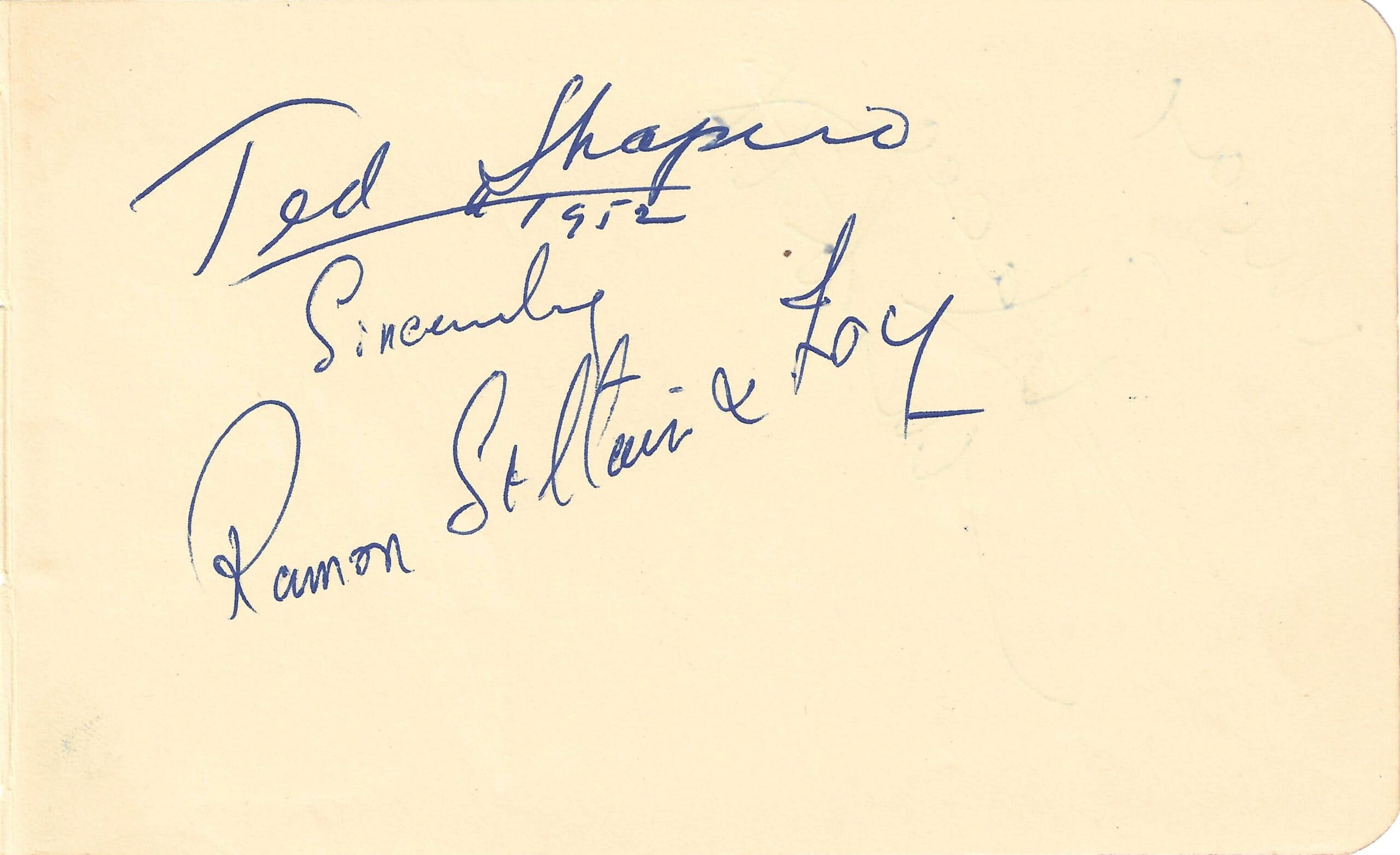 A 3×5 inch vintage album page signed by Ramon St. Clair.
