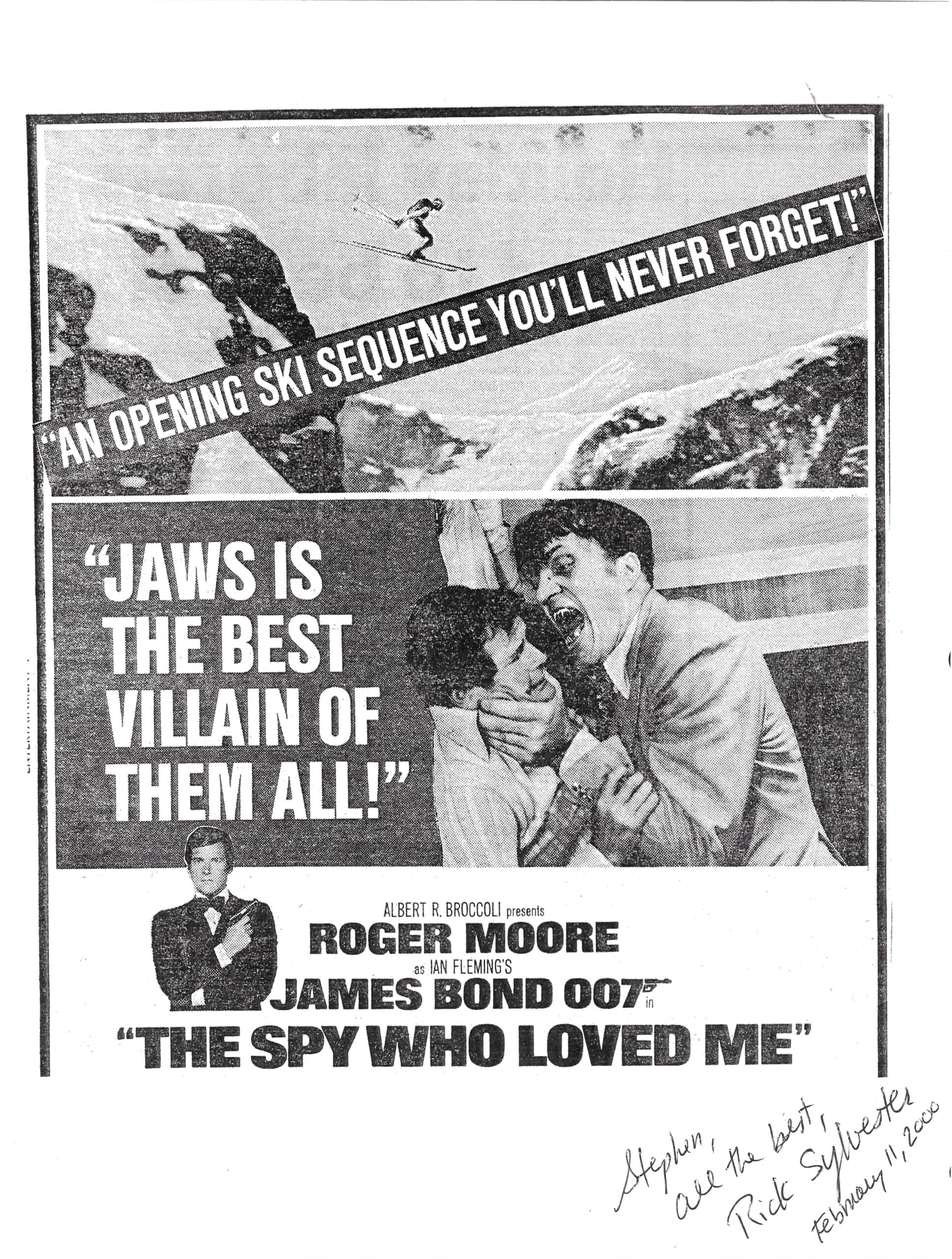 The Bond Archives & Bond Autograph Archives are in no way attached or officially associated with EON Productions, Danjaq LLC, United Artists Corporation, Columbia Pictures Industries, Sony, Universal Pictures, Ian Fleming, Glidrose Publications Limited or Metro-Goldwyn-Mayer Studios Inc. All film titles, character names, photographs, screenshots and other information which may be copyright protected are used as a reference only. All autographs, props and private interviews displayed within the Bond Archives & Bond Autograph Archives are owned and exclusively displayed by the Bond Archives, unless stated otherwise. No material found within this website may be removed, copied or reproduced in any form and by any means, without express written permission by the Bond Archives & Bond Autograph Archives.